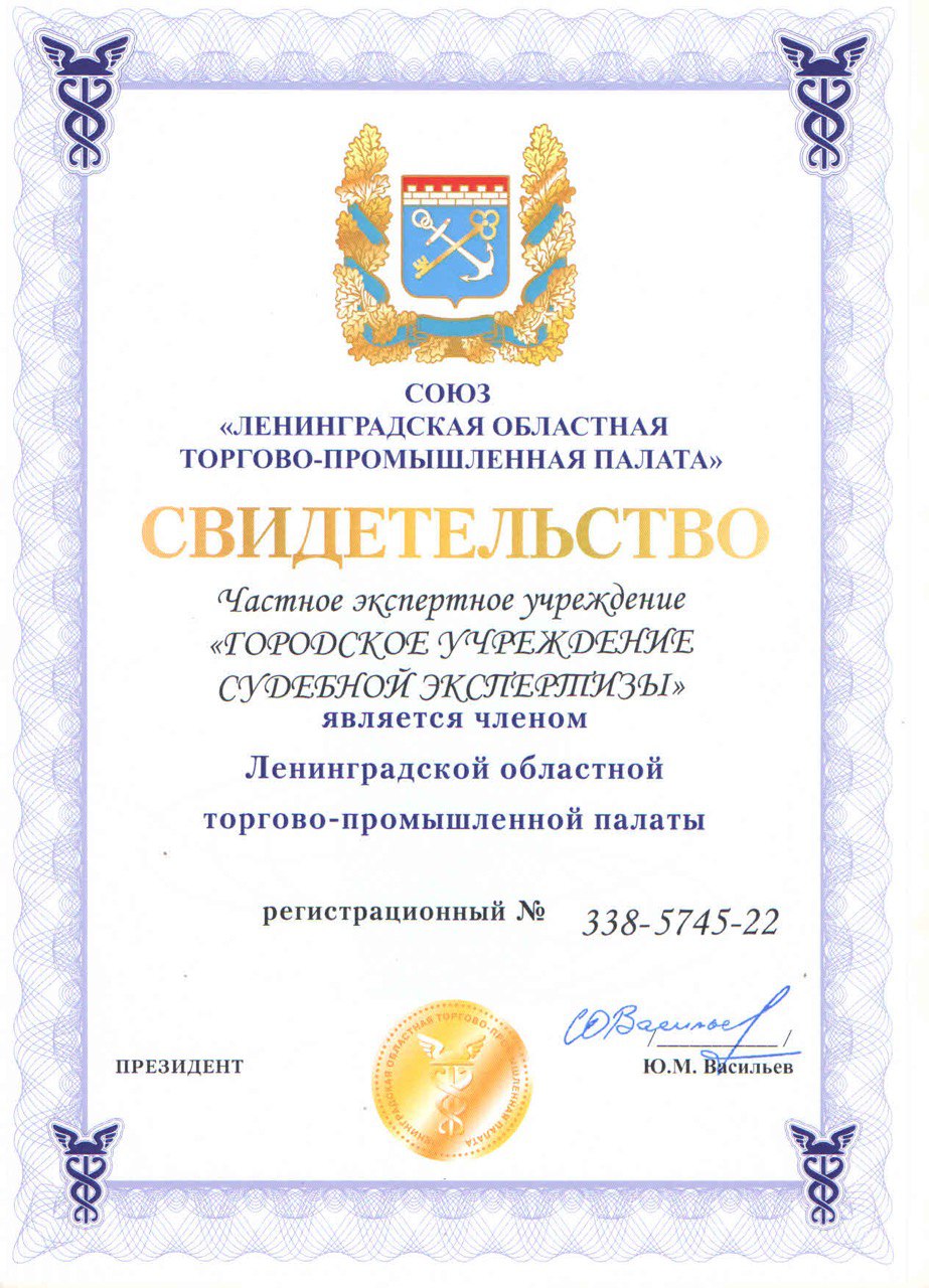 Свидетельство Союза «Ленинградская областная торгово-промышленная палата»