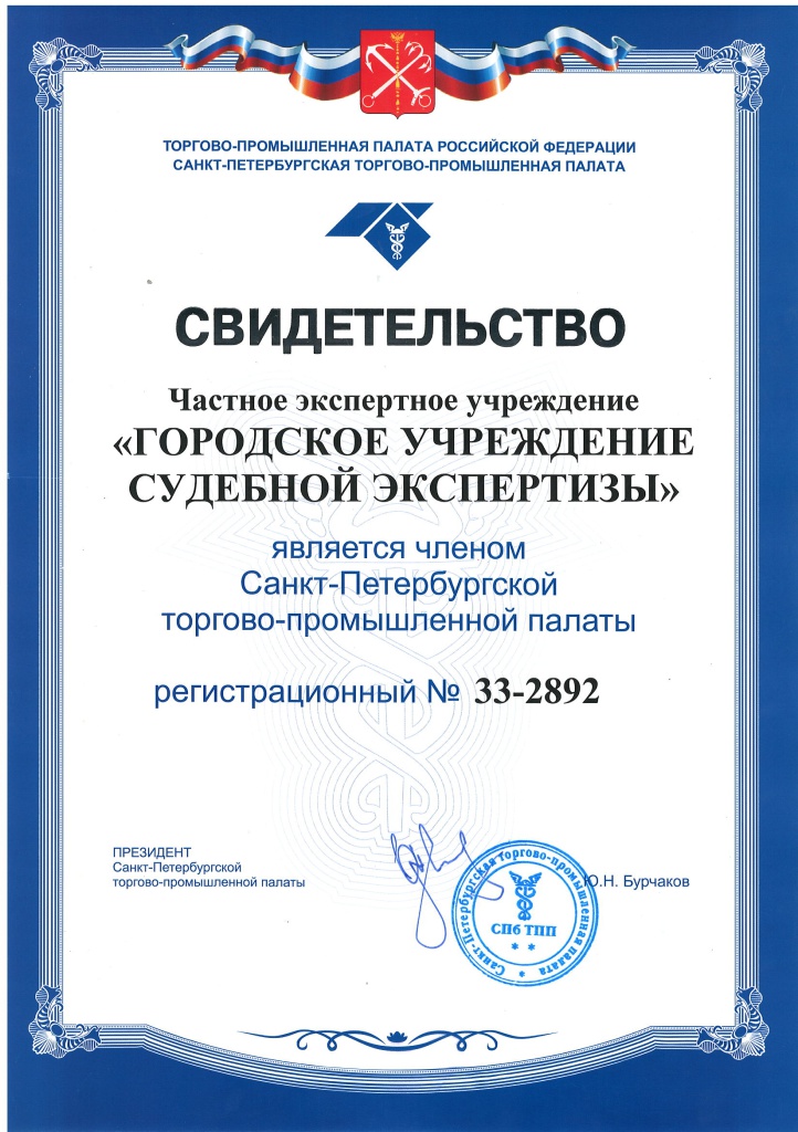 Свидетельство Союза «Санкт-Петербургская торгово-промышленная палата»